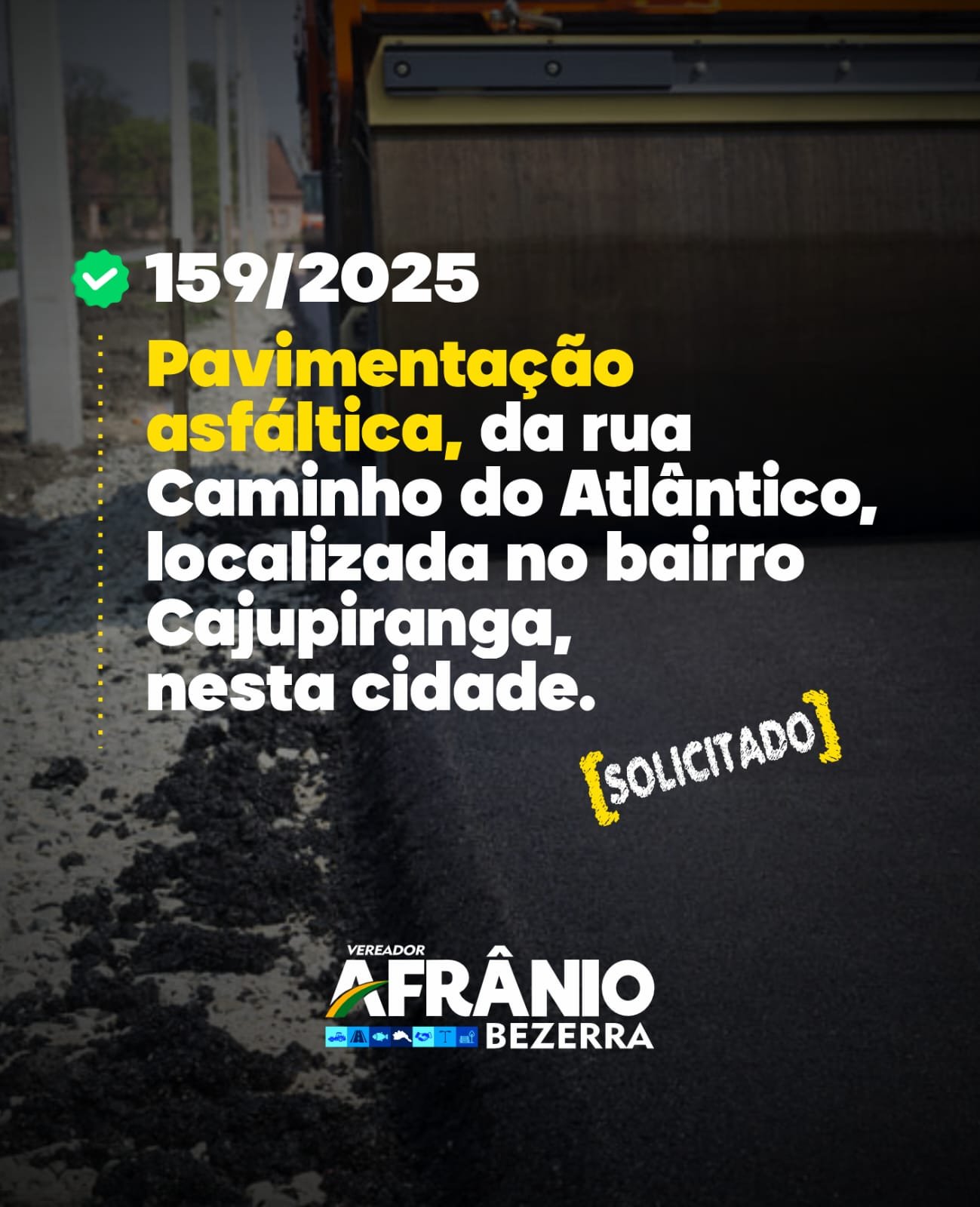 Vereador Afrânio Bezerra Reforça Pedido de Pavimentação Asfáltica 🚧🏗️