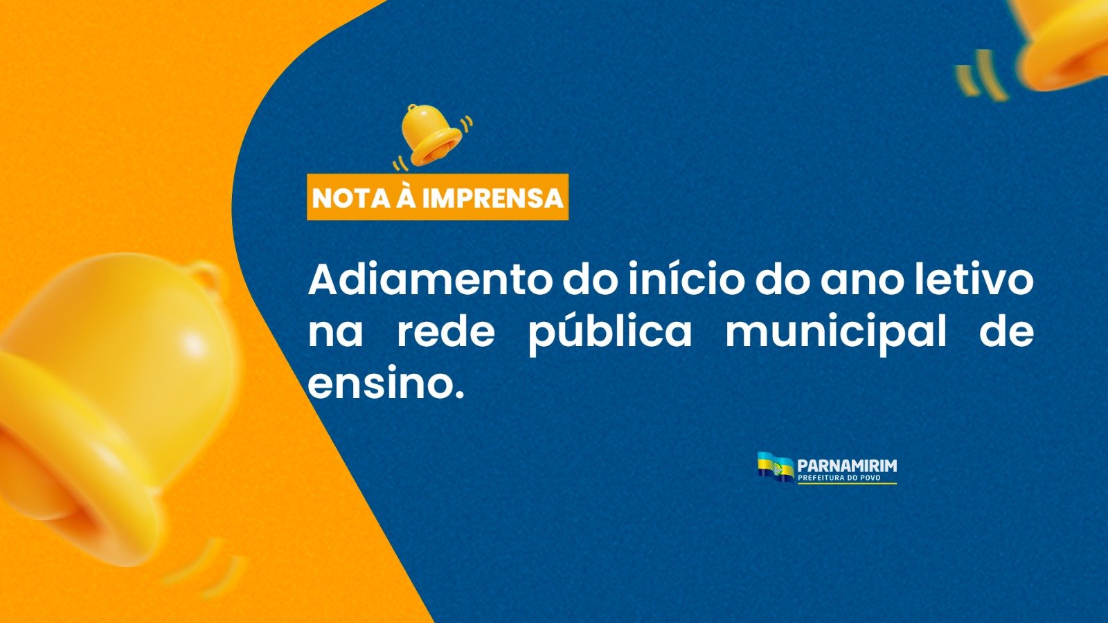 A Secretaria de Educação de Parnamirim informa que o início do ano letivo da rede municipal de ensino será adiado em duas semanas.
