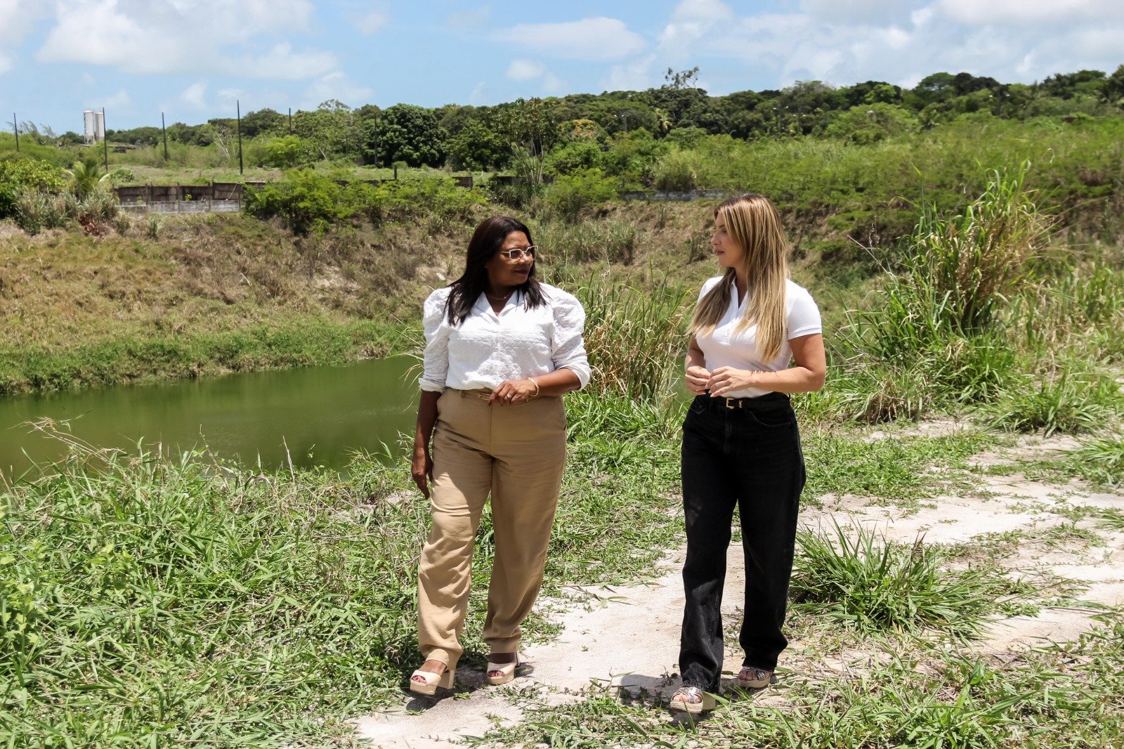O objetivo é finalizar o muro de contenção do equipamento, executar uma grande limpeza e implantar uma rampa de acesso para que o equipamento funcione de forma plena e, principalmente, segura. A Prefeita de Parnamirim, Nilda Cruz, foi conferir de perto a situação da Lagoa de Captação de Emaús nesta quinta-feira (30). Acompanhada de assessores, vereadores e da secretária de Serviços Urbanos, Carol Pires, a gestora conversou com moradores sobre a situação, que se mostrou muito preocupante. O equipamento de retenção da água de chuvas não está sequer finalizado e ainda por cima está passando por um processo de erosão que ameaça a segurança dos imóveis próximos, na travessa Santa Gema. A secretária da Semsur disse que com as últimas chuvas, a situação dos arredores da lagoa já piorou. “Herdamos essa lagoa completamente sem manutenção. Já fomos autorizados pela prefeita e vamos iniciar o trabalho de limpeza do local, construir o muro de contenção ao redor e uma rampa de acesso para a bomba móvel, necessária nos casos de emergência. O material de construção, inclusive, já chegou”, garantiu Carol. Dona Fátima mora próximo à lagoa. A moradora disse que no local já caíram animais, crianças perderam brinquedos, bolas, sem falar no risco para a segurança de quem mora na travessa. “Desde que moro aqui, nunca que um prefeito veio ver esse problema de perto. Tenho fé que vou ver essa situação resolvida”, disse esperançosa. De acordo com a equipe técnica da Semsur, as bombas da lagoa estão funcionando e existe a possibilidade de resolver definitivamente os problemas de alagamentos de Emaús, com a construção de mais uma lagoa, na Rua Santa Gema, ao lado da que já existe. A chefe do executivo disse que a Prefeitura vai cuidar das lagoas de captação priorizando a segurança e bem-estar da população. “O serviço que vamos fazer nesta lagoa vai melhorar a situação do bairro, mas acima de tudo, vai conferir dignidade às famílias que moram por aqui. A população merece todo o nosso empenho e dedicação”, disse Nilda.