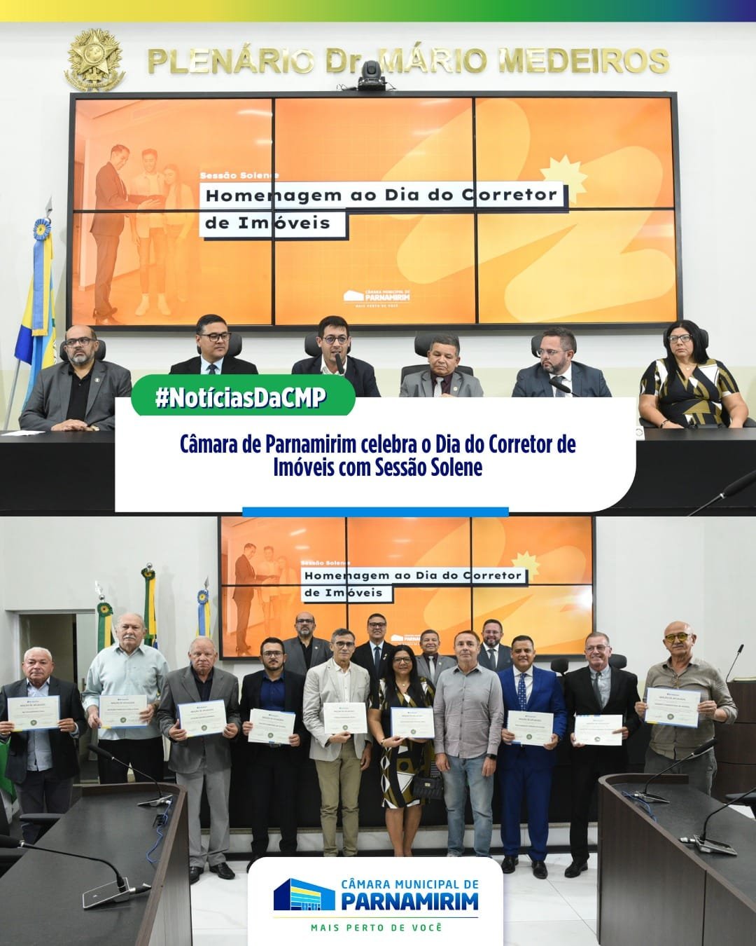 👥Em homenagem ao Dia do Corretor de Imóveis, a Câmara Municipal promoveu, na noite desta quarta-feira (27), uma sessão solene para celebração desses profissionais. A solenidade foi proposta pelo vereador Serginho e presidida pelo primeiro-secretário, vereador Thiago Fernandes. 🏢No município de Parnamirim existe a Lei Ordinária 1633 de 21 de outubro de 2013, que “Dispõe sobre a criação do Dia do Corretor de Imóveis no âmbito do Município de Parnamirim/RN e dá outras providências”. 💻 Leia a matéria completa em: https://camaraparnamirim.rn.gov.br/ #casalegislativa #camaradeparnamirim #parnamirimrn CÂMARA MUNICIPAL DE PARNAMIRIM