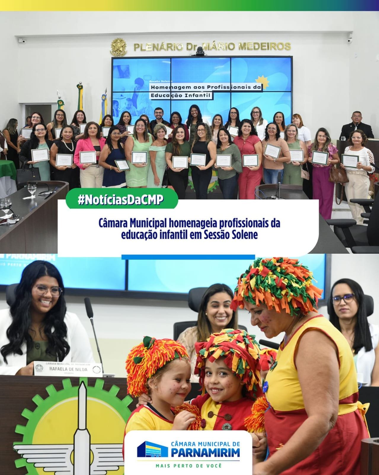 A Câmara de Parnamirim realizou, nesta terça-feira (26), uma sessão solene para homenagear os profissionais da educação infantil do município.
