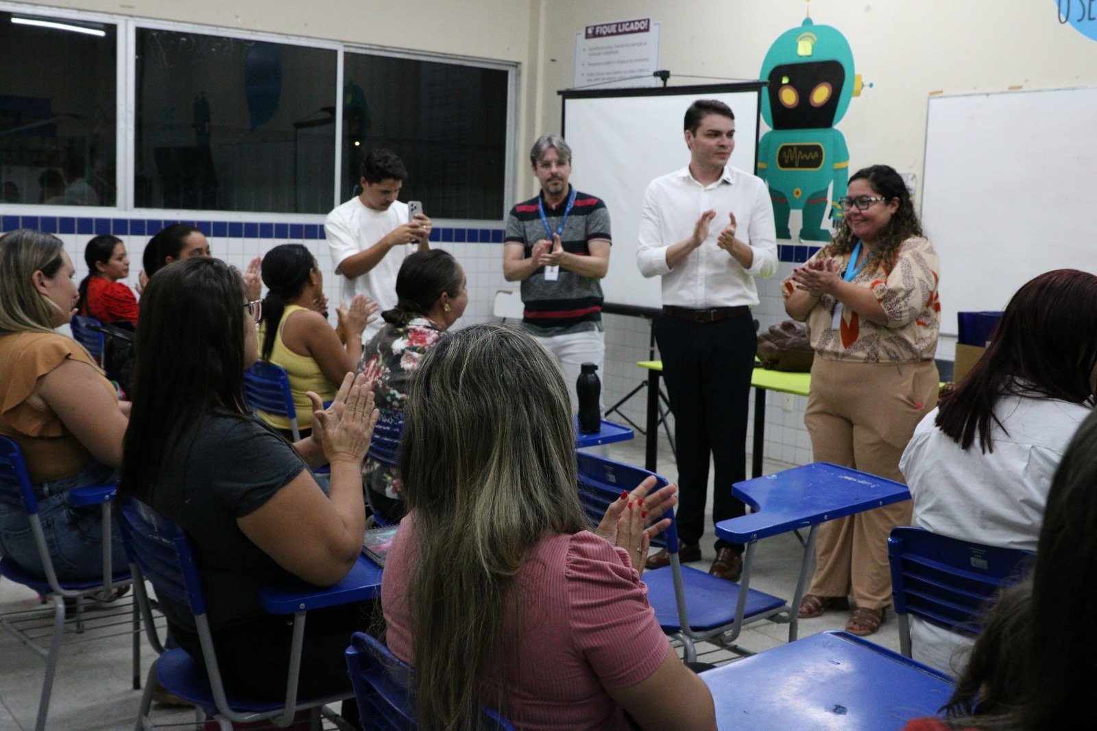 A Casa Legislativa parnamirinense realizou, nesta quarta-feira (20), a aula inaugural do curso de Cuidador de Idosos, promovido pela Escola do Legislativo Profª Eva Lúcia por meio do Projeto Novos Horizontes. A primeira aula aconteceu na Escola Municipal Emérito Nestor Lima, em Passagem de Areia, onde todas as atividades serão realizadas. O presidente da Câmara, vereador Dr. César Maia, esteve presente na abertura e destacou a importância de investir em qualificação profissional voltada para pessoas em situação de vulnerabilidade, ressaltando que a iniciativa contribui para a geração de emprego e renda no município. A capacitação é fruto de uma parceria entre a Escola do Legislativo e a Secretaria Municipal de Educação. As aulas acontecem de segunda a sexta-feira, no período noturno, das 18h às 22h, facilitando o acesso de quem já trabalha durante o dia. O curso disponibilizou 25 vagas na primeira turma, todas já preenchidas. A previsão é de que as atividades sejam concluídas na segunda semana de outubro, quando terá início a segunda turma, que também já está com vagas esgotadas. As inscrições ocorreram no CRAS de Passagem de Areia, mesmo bairro onde as aulas estão sendo realizadas. O Projeto Novos Horizontes, da Câmara Municipal de Parnamirim, foi criado para ampliar o acesso da população a conhecimentos e habilidades que fortalecem a inserção no mercado de trabalho e promovem a transformação social. Foto: Israel Kheron CÂMARA MUNICIPAL DE PARNAMIRIM