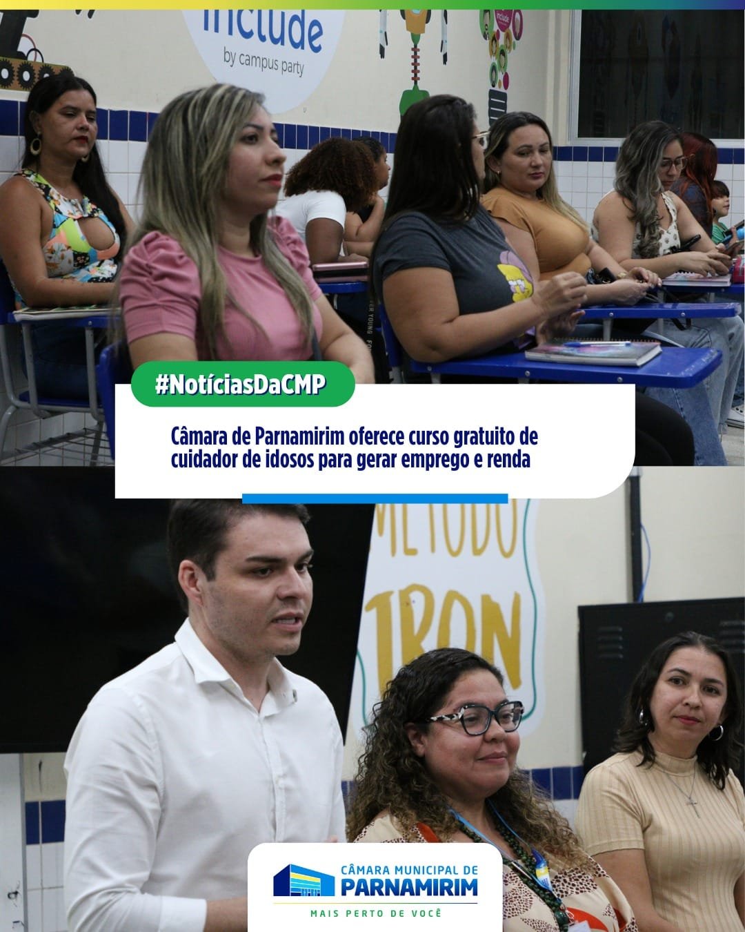 A Casa Legislativa parnamirinense realizou, nesta quarta-feira (20), a aula inaugural do curso de Cuidador de Idosos, promovido pela Escola do Legislativo Profª Eva Lúcia por meio do Projeto Novos Horizontes. 👥A primeira aula aconteceu na Escola Municipal Emérito Nestor Lima, em Passagem de Areia, onde todas as atividades serão realizadas. 🏢A capacitação é fruto de uma parceria entre a Escola do Legislativo e a Secretaria Municipal de Educação. As aulas acontecem de segunda a sexta-feira, no período noturno, das 18h às 22h, facilitando o acesso de quem já trabalha durante o dia. 💻 Leia a matéria completa em: https://camaraparnamirim.rn.gov.br/ #casalegislativa #camaradeparnamirim #parnamirimrn #cuidadordeidosos #capacitação CÂMARA MUNICIPAL DE PARNAMIRIM