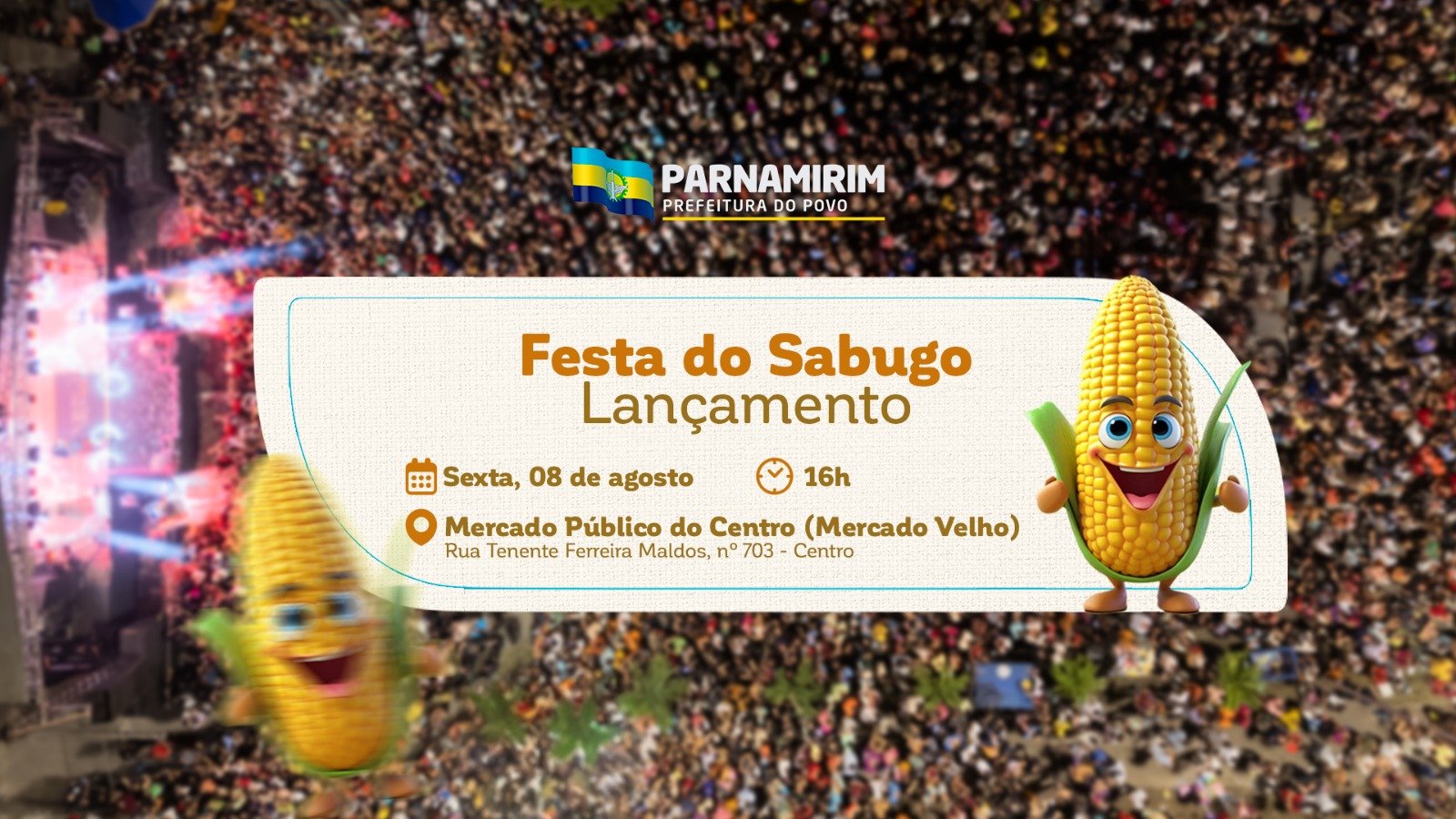 Com data oficial para lançamento, a Prefeitura de Parnamirim realizará na próxima sexta-feira (8) a divulgação da tão esperada e tradicional Festa do Sabugo. O lançamento será no Mercado Público do Centro (Mercado Velho), a partir das 16h. A Festa do Sabugo, evento tradicional em Parnamirim, está prevista para acontecer nos dias 29, 30 e 31 de agosto no Parque de Exposições Aristófanes Fernandes, com grandes nomes da música local e nacional, promovendo momentos de lazer, cultura e entretenimento para a população, além de movimentar a economia municipal, promovendo emprego e renda para os ambulantes e artistas da terra. Uma realização através das Secretarias de Turismo (Setude) e Cultura (Semuc), este ano, a promessa é de que seja a maior Festa do Sabugo da história de Parnamirim. Lançamento Festa do SabugoDia e hora: 08 de agosto (sexta-feira) às 16h;Local: Mercado Público do Centro (Mercado Velho) – Rua Tenente Ferreira Maldos, nº 703 – Centro. PREFEITURA DE PARNAMIRIM