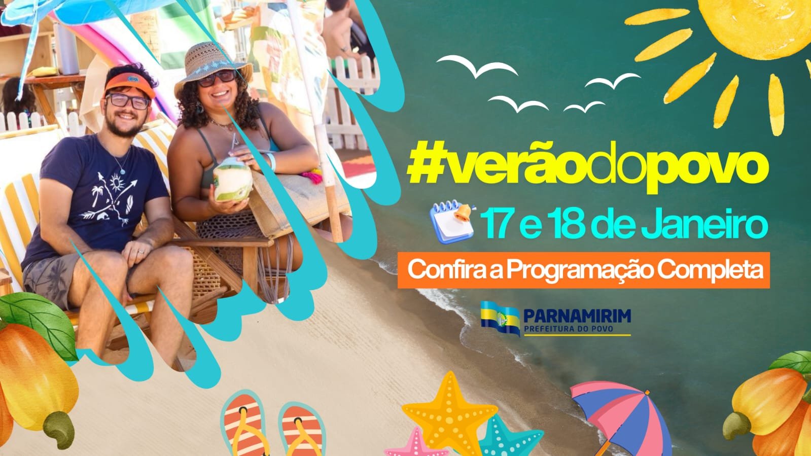 A Prefeitura de Parnamirim preparou um fim de semana especial de verão no litoral parnamirinense, pensado para valorizar os espaços públicos e garantir mais lazer, saúde e qualidade de vida para moradores e turistas. Nos dias 17 e 18 de janeiro, a programação acontece principalmente na praia de Pirangi, reunindo esporte, música, bem-estar e atividades para toda a família. As ações começam cedo e seguem até a noite, com uma agenda diversificada, gratuita e aberta ao público. Ao longo de todo o dia, quem passar pela orla vai encontrar ativações simultâneas, como futmesa, esportes de praia, massagem, jogos recreativos e distribuição de drinks não alcoólicos, criando um ambiente de convivência, diversão e cuidado com a saúde. Mais do que entretenimento, a programação de verão é uma iniciativa que fortalece o turismo local, movimenta a economia e incentiva hábitos saudáveis. A gestão municipal aposta no esporte, na cultura e no lazer como ferramentas de inclusão social e valorização da cidade, promovendo ações que aproximam a população dos espaços públicos e estimulam o uso consciente e coletivo das praias. É uma programação de verão feita para o povo, que reforça o compromisso da Prefeitura de Parnamirim em oferecer um verão com mais esporte, lazer, cultura e bem-estar, consolidando o litoral como espaço de encontro, alegria e qualidade de vida para todos. CONFIRA A PROGRAMAÇÃO: SÁBADO (17/01) Projeto Se Cuida Parnamirim:Das 9h às 13h – Com atividades integradas.Local: Praia de Pirangi. TV Ponta Negra:A partir das 15h30 – Show da banda Circuito MusicalLocal: Em frente ao Bar do Suvaco em Pirangi. Verão PAN – 98 FM:A partir das 14h – Yoga, hitbox e aula de dança16h30 – Show de Alan PersaLocal: Próximo ao letreiro I Love Parnamirim em Pirangi. Arena de Verão – Clube FM:Das 7h às 8h – Fit DanceDas 8h às 17h – Futevôlei e beach vôleiLocal: Próximo ao posto da CAERN em Pirangi. Corrida Praiana:A partir das 7h30Local: Ao lado da Arena Nordestão em Pirangi. 96 FM – Estação Verão 96:10h às 12h – Em frente aos Corais de Cotovelo DOMINGO (18/01) Corrida São Sebastião:A partir das 4h15 – Concentração na Praça São Sebastião em Pirangi. Arena de Verão – Clube FM:Das 7h às 8h – Fit DanceDas 8h às 17h – Beach vôleiLocal: Próximo ao posto da CAERN em Pirangi. 96 FM – Estação Verão 96:10h às 12h – Em frente aos Corais de Cotovelo PREFEITURA DE PARNAMIRIM