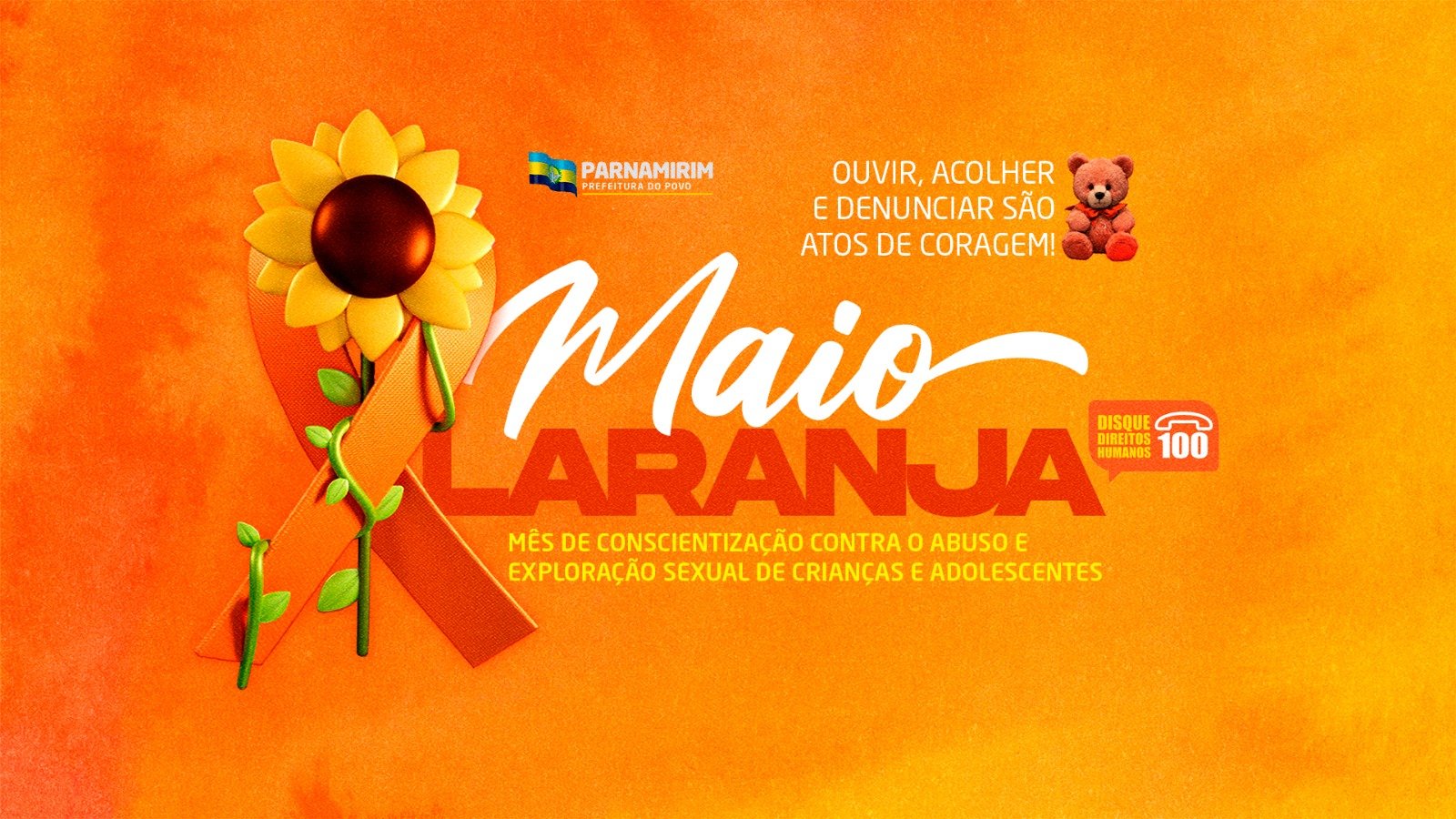 A Prefeitura de Parnamirim inicia os preparativos para as atividades do Maio Laranja, mês de conscientização contra o abuso e à exploração sexual de crianças e adolescentes. Todas as atividades desenvolvidas neste mês, são relacionadas ao 18 de Maio, que é o Dia Nacional de Combate ao Abuso e à Exploração Sexual de Crianças e Adolescentes e, este ano, completa 25 anos desde sua implantação. Sendo um marco na luta e na promoção de ações voltadas para a proteção integral desses indivíduos, onde a responsabilidade pela garantia dos direitos de crianças e adolescentes é compartilhada entre Estado, sociedade e família. Conheça os Canais de Denúncia em nosso município: PREFEITURA DE PARNAMIRIM