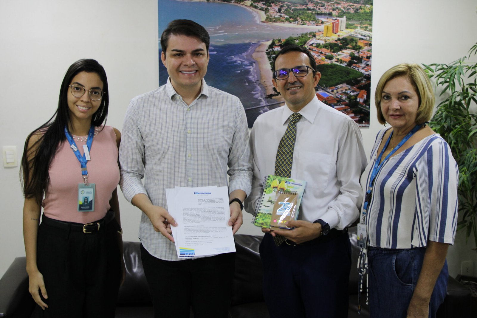 Nesta segunda-feira (05), a Câmara de Parnamirim recebeu o presidente da Igreja de Jesus Cristo dos Santos dos Últimos Dias, Rutém de Oliveira Marcolino, para assinatura do termo de cooperação que estabelece uma parceria para desenvolvimento e implementação de um curso de inglês, visando à capacitação dos servidores da Casa Legislativa. “Estamos celebrando os 20 anos da Escola do Legislativo Professora Eva Lúcia, para isso estamos trazendo diversas novidades, dessa vez, voltada à valorização dos profissionais internos”, disse o presidente da Câmara, vereador Dr. César Maia, ao assinar o acordo. O curso começará no dia 25 de maio, de forma online e síncrona, contando com certificado de 50h de aula no primeiro módulo. As inscrições estarão abertas no aplicativo Câmara Conecta a partir da próxima semana para as 20 vagas disponibilizadas. CÂMARA MUNICIPAL DE PARNAMIRIM