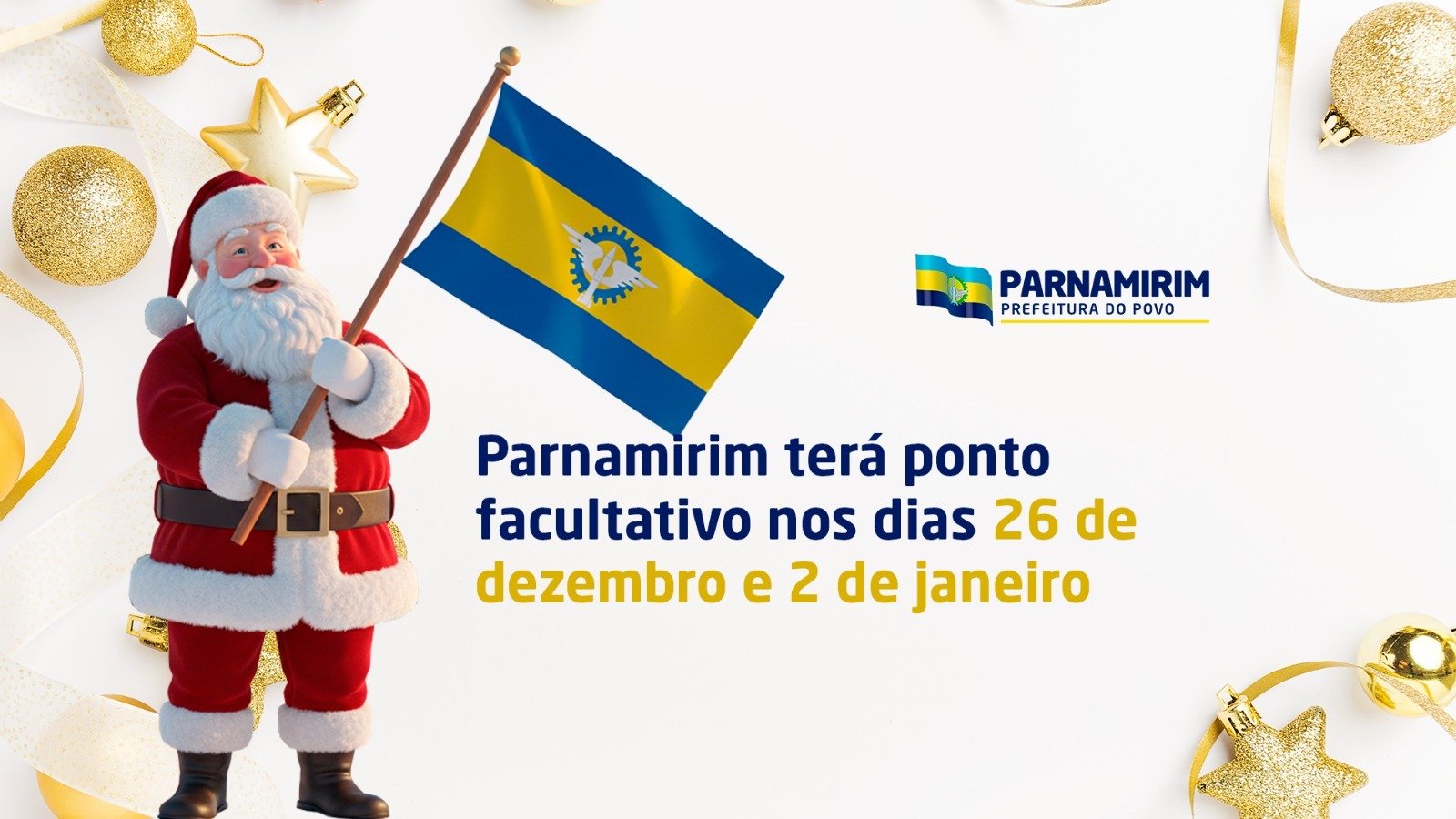 A Prefeitura de Parnamirim decretou ponto facultativo para os dias 26 de dezembro e 2 de janeiro para os órgãos do Poder Executivo, prolongando os feriados de Natal e de Ano Novo na cidade. Conforme o decreto publicado nesta terça-feira, as repartições prestadoras de serviços essenciais seguirão funcionando normalmente para garantir a continuidade do atendimento à população, como a coleta de lixo domiciliar, segurança pública e os serviços de saúde de urgência e emergência. A população que precisar de atendimento deve considerar que, durante o período de fim de ano, nos dias de ponto facultativo, o expediente interno nas unidades administrativas da Prefeitura ficará suspenso, retornando ao funcionamento regular no primeiro dia útil subsequente a cada data. Confira: PREFEITURA DE PARNAMIRIM