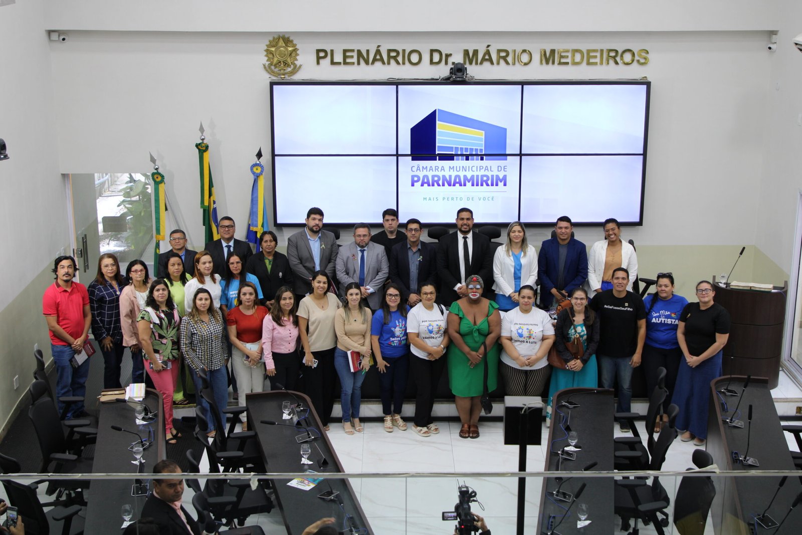Nesta segunda-feira, 07 de abril, a Câmara Municipal de Parnamirim realizou, no Plenário Dr. Mário Medeiros, uma audiência pública com o tema “Autismo – Desafios da inclusão”. O evento teve como objetivo destacar as necessidades das pessoas e famílias atípicas do município, além dos caminhos possíveis para integração dessa comunidade nas esferas públicas de Parnamirim. Proposta pelos vereadores Dr. Cesar Maia e Michael Diniz, a audiência teve na composição da mesa, além dos vereadores proponentes, o parlamentar Thiago Fernades; a secretária de educação de Parnamirim, Eliza Toscano; a presidente do Instituto Recebs, Carmem Helane; e o presidente da Associação dos Pais e Amigos dos Autistas de Parnamirim (Apaap), Jonata Justino. Os demais vereadores e representantes da comunidade em geral também estiveram presentes no evento. O propositor da audiência, o vereador Michael Diniz agradeceu a presença de todos e reforçou o seu compromisso com o atendimento das pessoas com transtorno do espectro autista (TEA): “A gente sabe que é um tema que vem recorrente, e o número vem aumentando, então nós temos que trabalhar da melhor maneira”. Na tribuna, Jonata Justino, presidente da Apaap, usou a palavra para dar ênfase às dificuldades encontradas pelos pais atípicos para encontrar suporte e integração para seus filhos na educação e saúde de Parnamirim. O presidente da Associação também reiterou o pedido de criação de um centro municipal especializado para o atendimento de pessoas do espectro autista. Como representante do executivo municipal, Eliza Toscano, secretária de Educação de Parnamirim, situou o panorama atual de Parnamirim nesta realidade através de dados. Segundo a gestora, a rede municipal de educação conta atualmente com 884 alunos com TEA matriculados em 67 unidades escolares, que disponibilizam de 485 estagiários para suporte pedagógico, além de 86 profissionais de apoio escolar e 47 professores especialistas para atendimento especializado. “prometeu a abertura de 3 novas salas multifuncionais, o lançamento do Plano de Gestão Municipal, que criará cargo de professor da educação especial, e a contratação de novos estagiários”, disse Eliza Toscano, secretária de Educação. “Estamos em estudos para construção do Plano de Gestão Municipal, com vistas na criação do cargo de professor da educação especial. […] Prevista ainda para o primeiro bimestre, a abertura de 3 salas multifuncionais. […]Contratação de mais estagiários e a formação continuada para atuação de práticas significativas”, disse a secretária. CÂMARA DE PARNAMIRIM