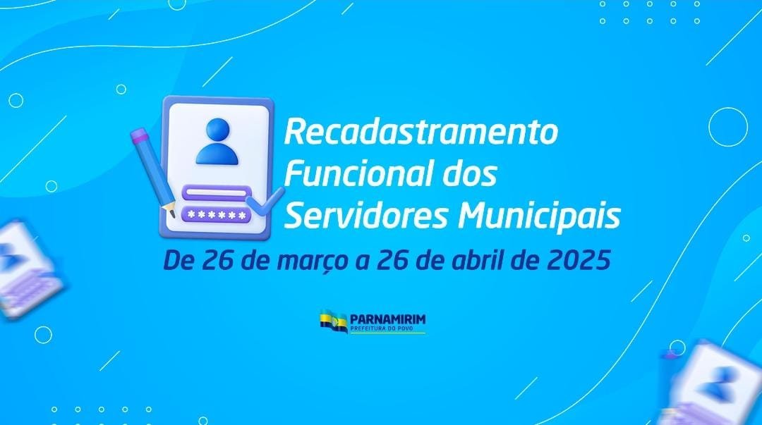 A Prefeitura Municipal de Parnamirim, por meio da Secretaria de Administração e Recursos Humanos (SEARH), informa que estará realizando, entre os dias 26 de março e 26 de abril de 2025, o Recadastramento Funcional dos Servidores Públicos Municipais. A ação está regulamentada pela Portaria nº 002/2025 – SEARH/GS, em conformidade com os Decretos Municipais nº 7.675 e 7.679, ambos de 2025. O recadastramento tem como objetivo a atualização cadastral, a promoção de maior eficiência na gestão de pessoas e a realização da Pesquisa de Clima Organizacional 2025. A participação é obrigatória para todos os servidores da administração direta e indireta, ativos, e será realizada em duas etapas: virtual e presencial. Etapas do RecadastramentoEtapa Virtual: Através da plataforma Parnamirim Digital – 1DOC, os servidores deverão preencher o questionário de atualização de dados, anexar os documentos exigidos e responder à Pesquisa de Clima Organizacional. Etapa Presencial: Após a conclusão do processo virtual, o servidor deverá imprimir o comprovante de participação e entregá-lo à sua chefia imediata no local de trabalho. Documentação NecessáriaOs documentos devem ser enviados digitalmente (formato PDF ou JPEG) via plataforma Parnamirim Digital – 1DOC: Documento de identidade (RG); CPF; Comprovante de residência atualizado; Comprovante de maior escolaridade; Título de Eleitor; Certidão de casamento e/ou averbação de divórcio (quando aplicável); Registro de nascimento dos filhos (0 a 16 anos); CNH (para motoristas e operadores de máquinas); Certificado de Reservista (para homens com até 50 anos). Ficam dispensados os documentos já atualizados junto à Coordenadoria de Gestão de Pessoas, como portaria de nomeação, termo de posse e cópia do último contracheque. Consequência em caso de não participaçãoO não cumprimento do recadastramento no prazo estipulado poderá acarretar o bloqueio do pagamento dos vencimentos do servidor, conforme prevê a legislação municipal vigente. O restabelecimento ocorrerá após a regularização da situação funcional. Encaminhamentos internosAs chefias imediatas e as unidades de Recursos Humanos de cada Secretaria são responsáveis por acompanhar e atestar a participação dos servidores. Ao final do processo, relatórios conclusivos serão enviados à SEARH para finalização do procedimento. Para mais informações, os servidores podem acessar o site oficial da Prefeitura:🔗 parnamirim.rn.gov.br PREFEITURA DE PARNAMIRIM