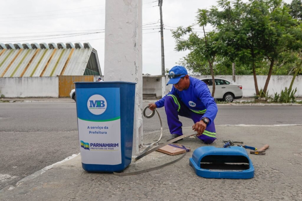 A Prefeitura de Parnamirim, através da Secretaria Municipal de Limpeza Urbana (Selim), seguiu avançando nesta quinta-feira (11) com melhorias para a coleta de lixo no município, instalando mais de 10 lixeiras em pontos de ônibus e postes estratégicos na Rua Cândido Martins dos Santos no bairro Rosa dos Ventos.