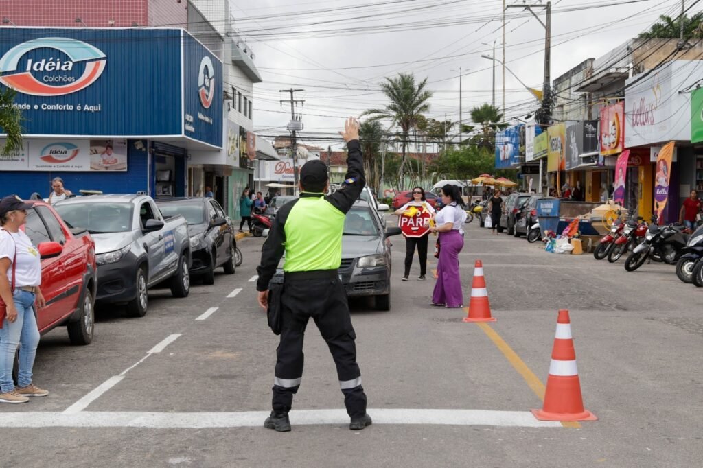 A ação da equipe concentrou-se em realizar panfletagem com orientações de segurança no trânsito, bem como auxiliando os transeuntes no uso correto das faixas de pedestres que foram recentemente revitalizadas.