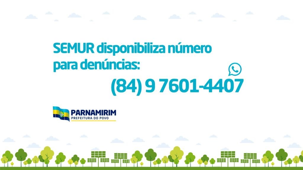 A Prefeitura de Parnamirim, por meio da Secretaria Municipal de Meio Ambiente e Desenvolvimento Urbano (Semur), informa que a população pode realizar denúncias através do telefone (84) 97601-4407.