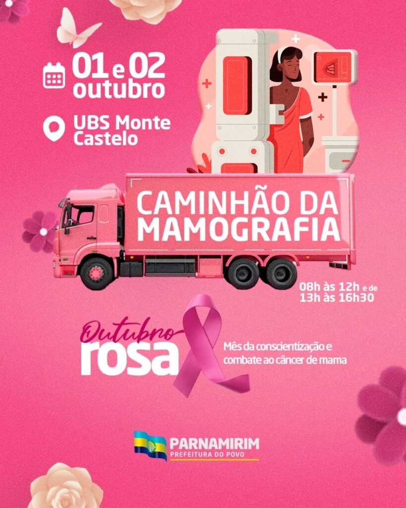 Nos dias 1 e 2 de outubro, o Carro da Mamografia estará disponível na UBS Monte Castelo.