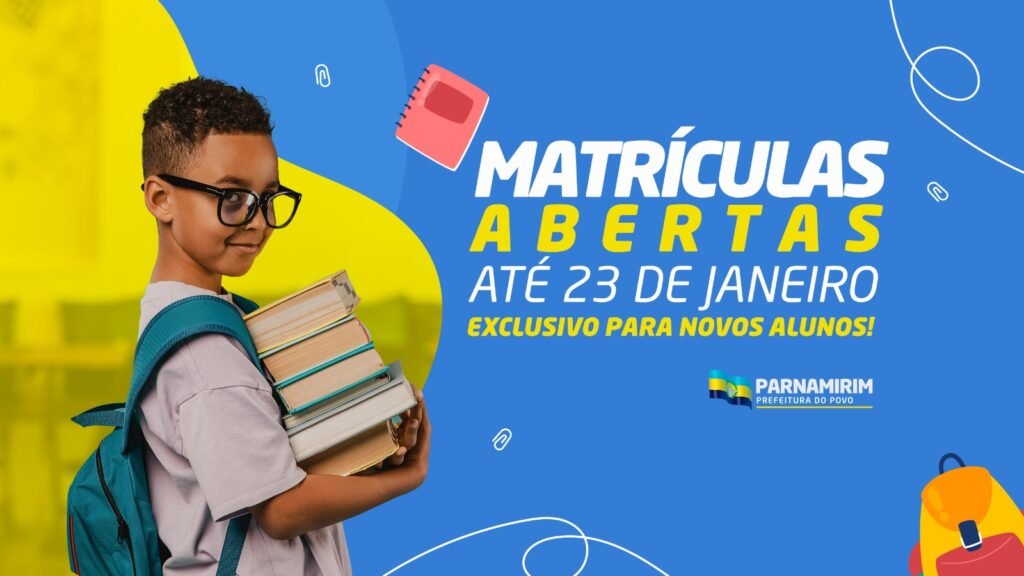 A Prefeitura de Parnamirim, por meio da Secretaria Municipal de Educação (SME), segue com o período de matrículas para novos alunos da rede municipal de ensino referente ao ano letivo de 2026. O prazo para inscrição vai até o dia 23 de janeiro.