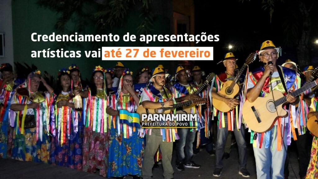 A Prefeitura de Parnamirim, por meio da Secretaria Municipal de Turismo e Desenvolvimento Econômico (Setude), prorrogou o prazo de Credenciamento de Apresentações Artísticas da Chamada Pública nº 005/2026, destinado ao fomento da música, até o dia 27 de fevereiro.